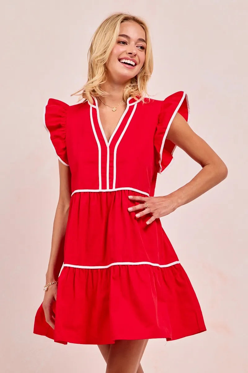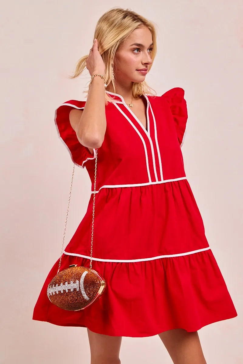 BiBi Gameday Theme Contrast Binding Ruffled Dress