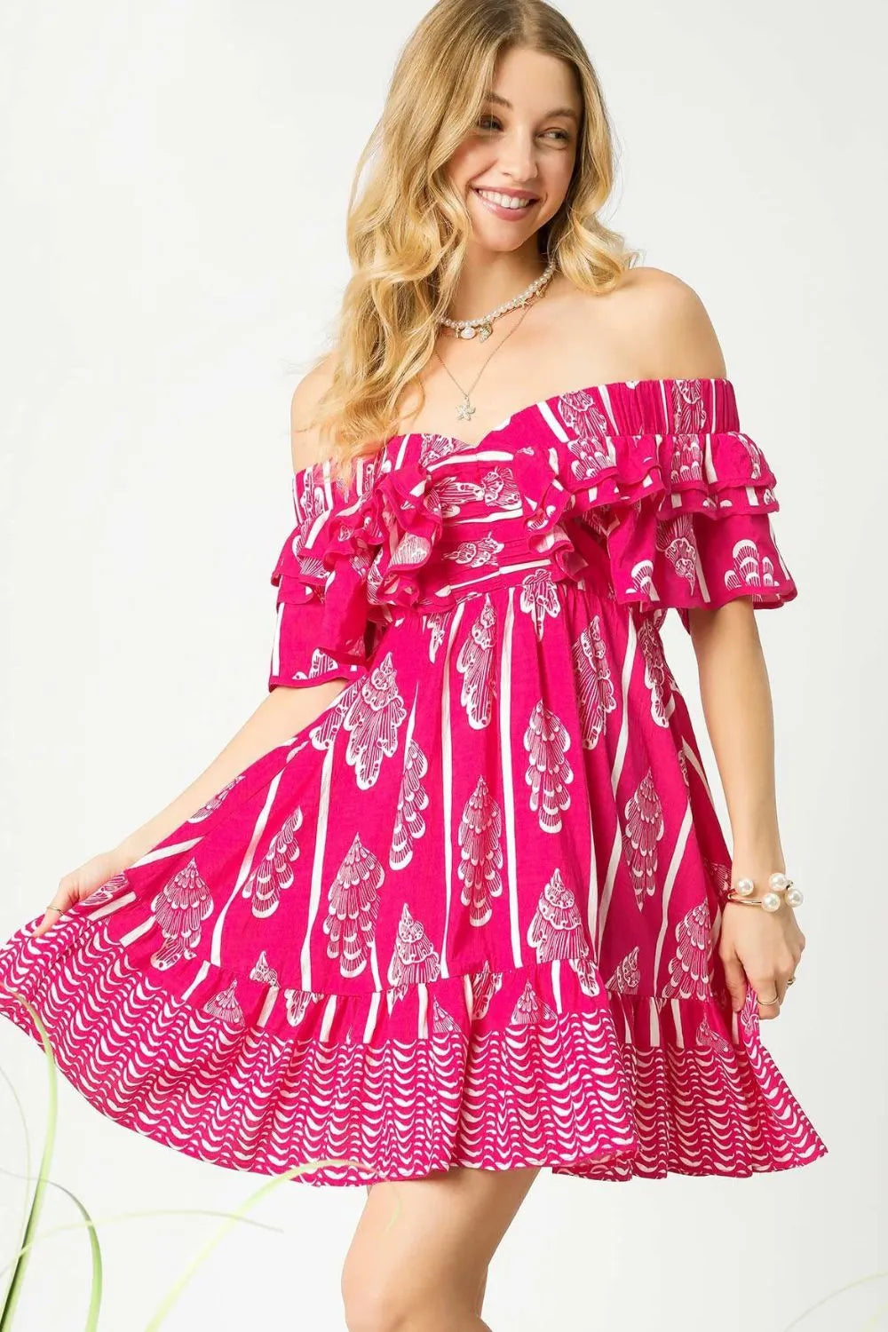 Umgee Off-Shoulder Paisley Print Ruffled Mini Dress