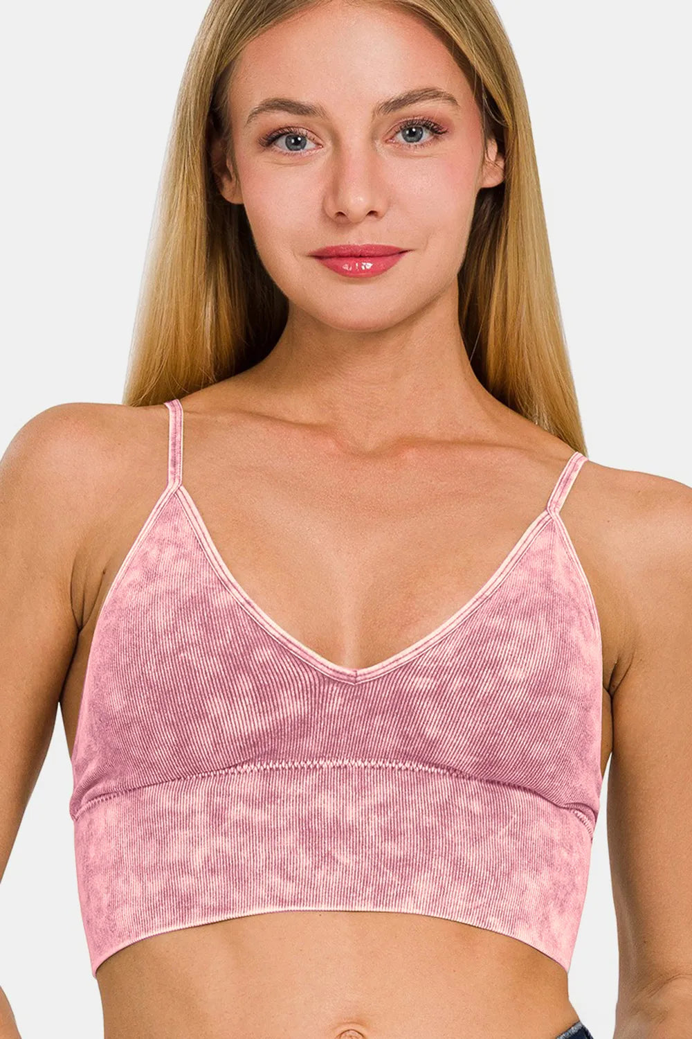 Zenana Washed Ribbed Bra Padded Cami